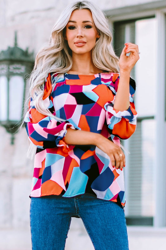 Sold outGeometric Flounce Sleeve Blouse
