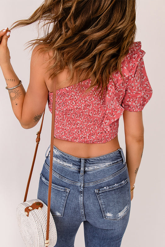 Ditsy Floral Ruffled One-Shoulder Smocked Top