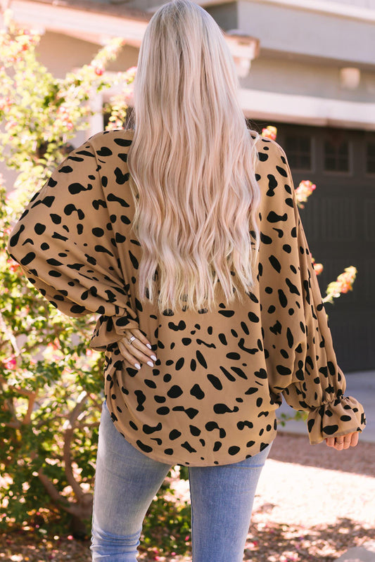 Sold outPrinted Flounce Sleeve V-Neck Blouse