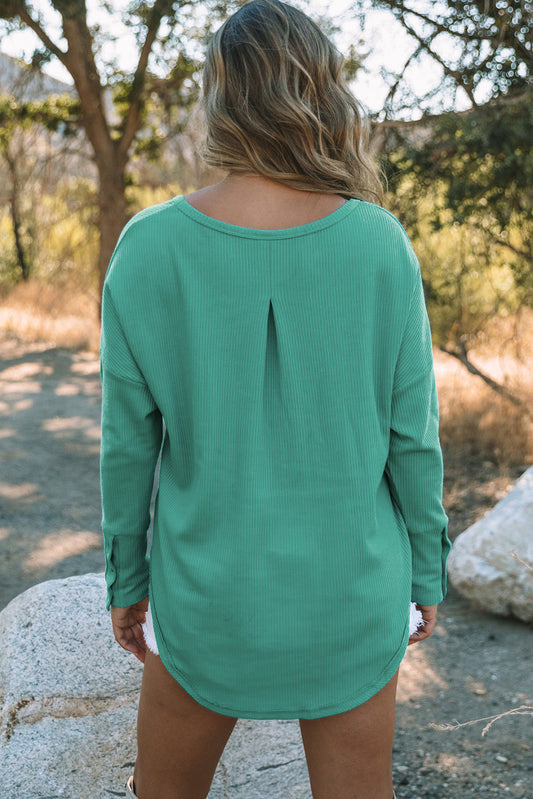 Sold outRibbed Drawstring Dolman Sleeve Top