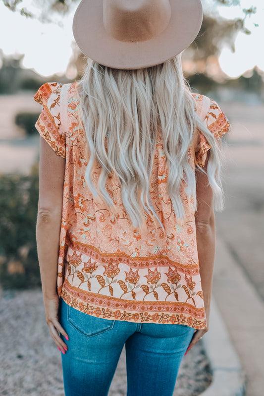 Floral Flutter Sleeve Sleeveless Blouse