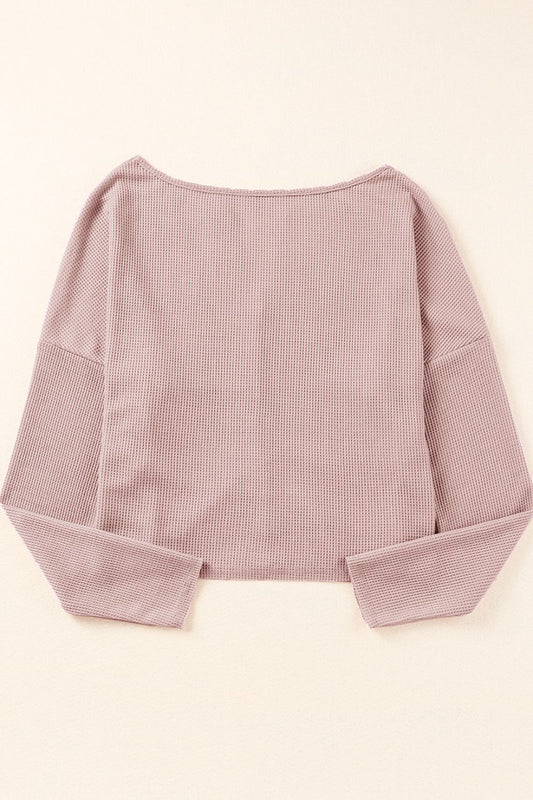 Waffle-Knit Dropped Shoulder Notched Top