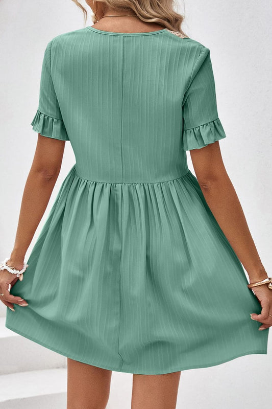 V-Neck Flounce Sleeve A-Line Dress