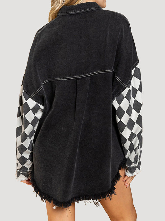 Fringe Detail Button-Down Collared Neck Denim Jacket