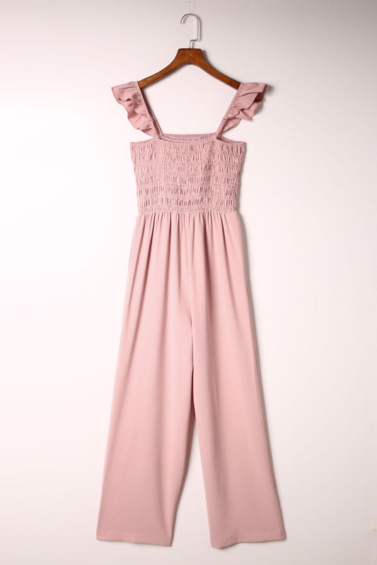 Ruffle Shoulder Smocked Pocket Jumpsuit
