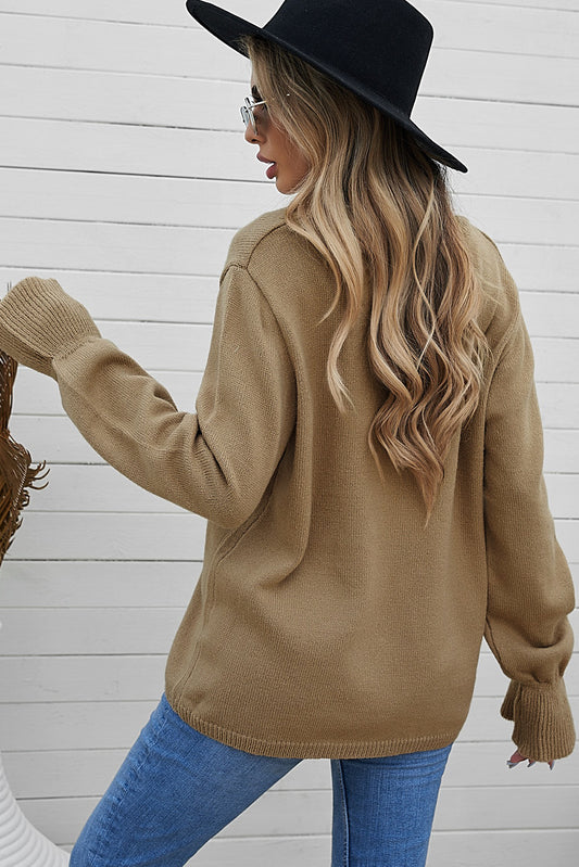 Lace Trim Flounce Sleeve V-Neck Sweater