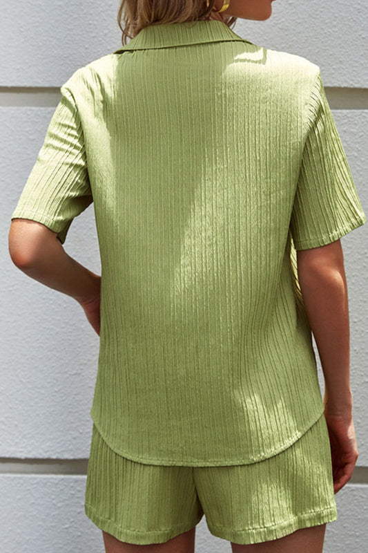 Textured Frill Trim Off-Shoulder Top and Shorts Set