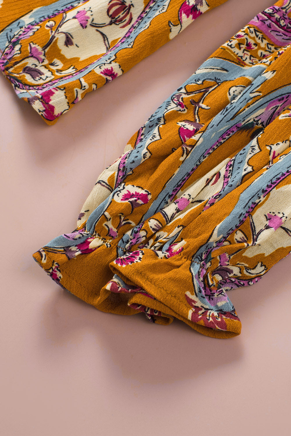 Bohemian Long Flounce Sleeve V-Neck Blouse