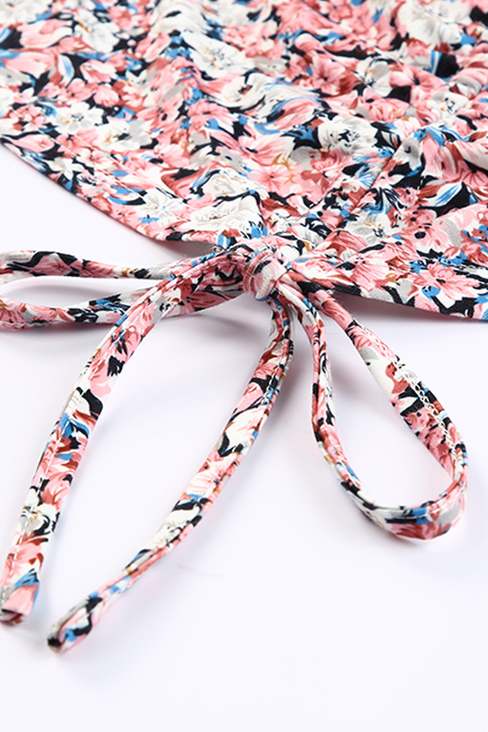 Floral Flutter Sleeve Drawstring Cropped Blouse