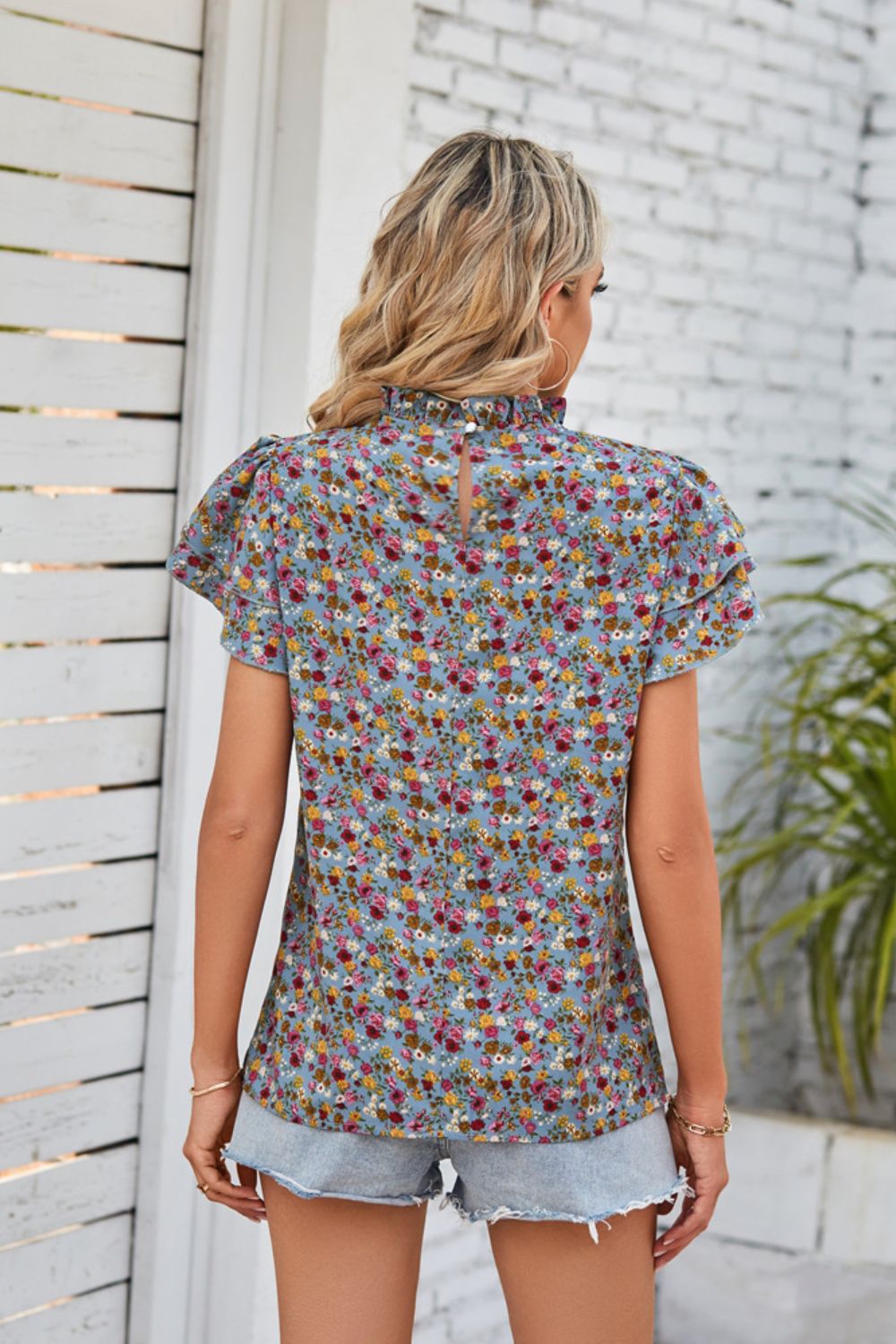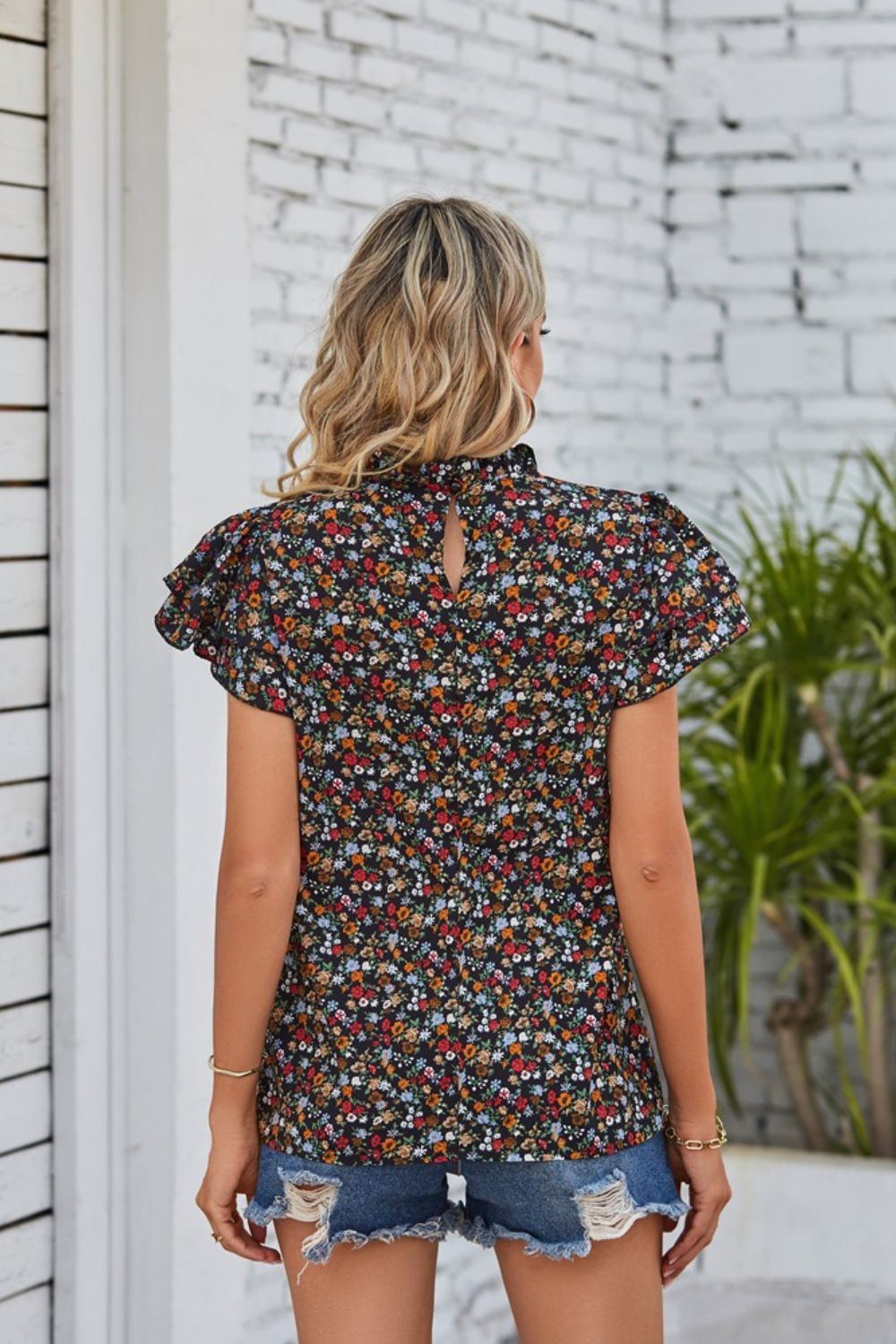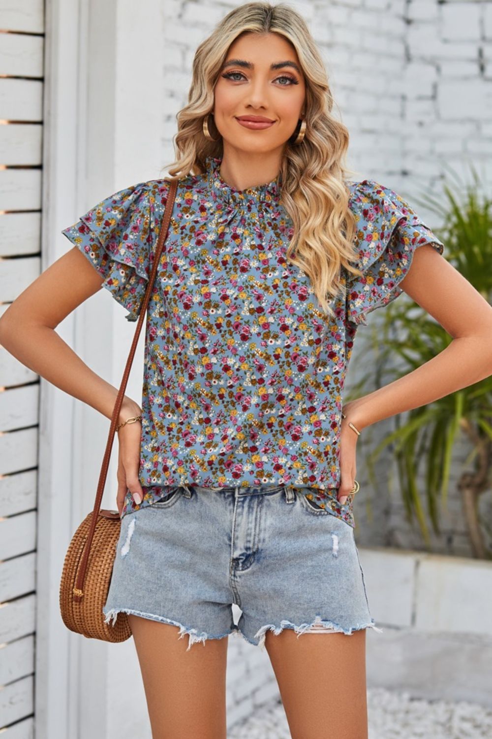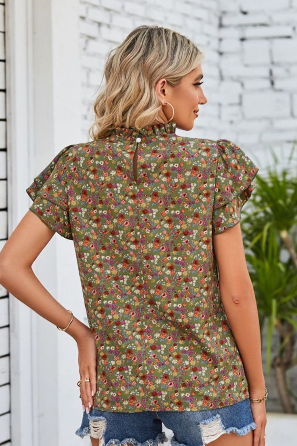 Floral Ruffle Collar Flutter Sleeve Blouse