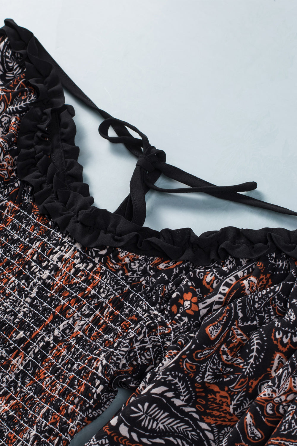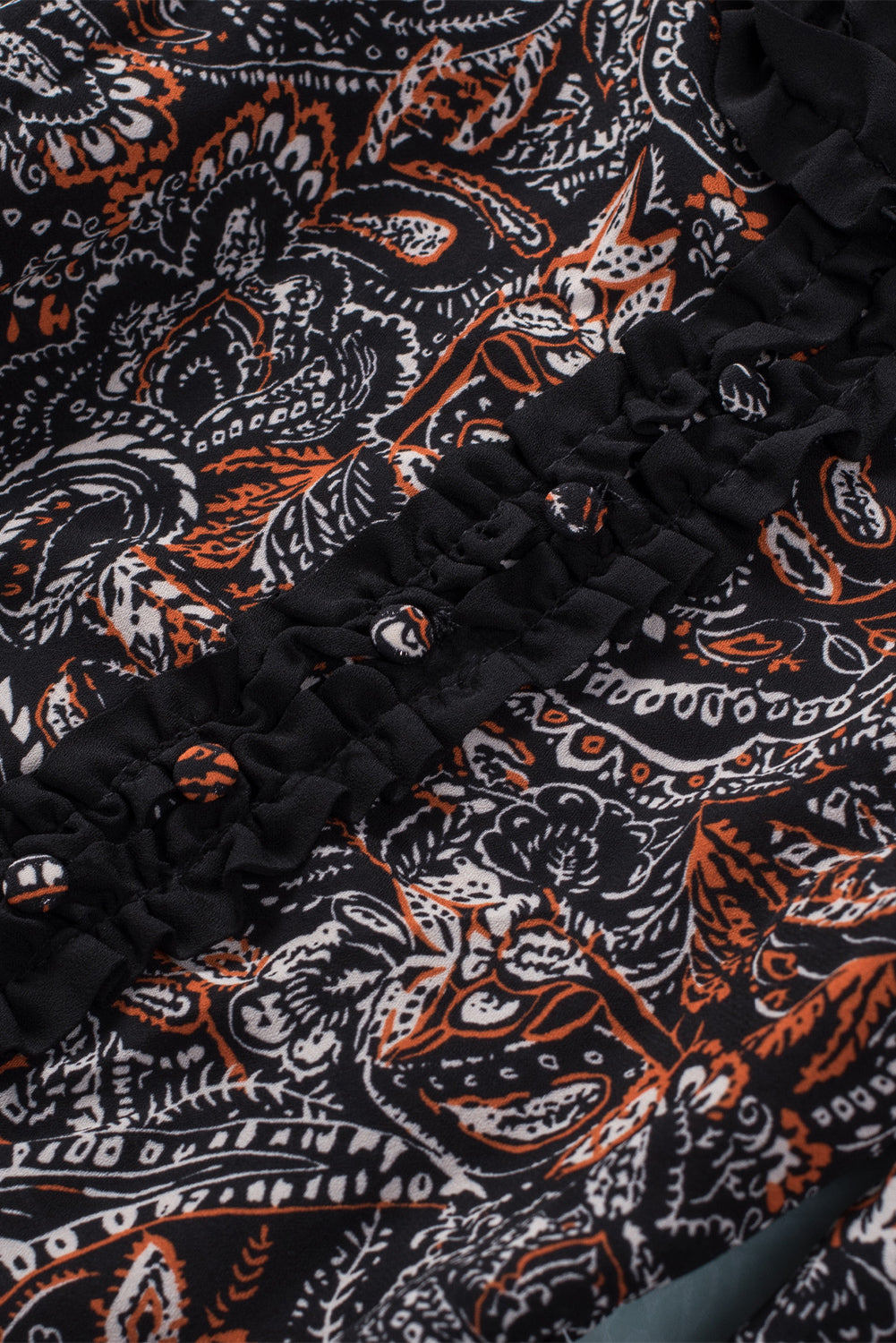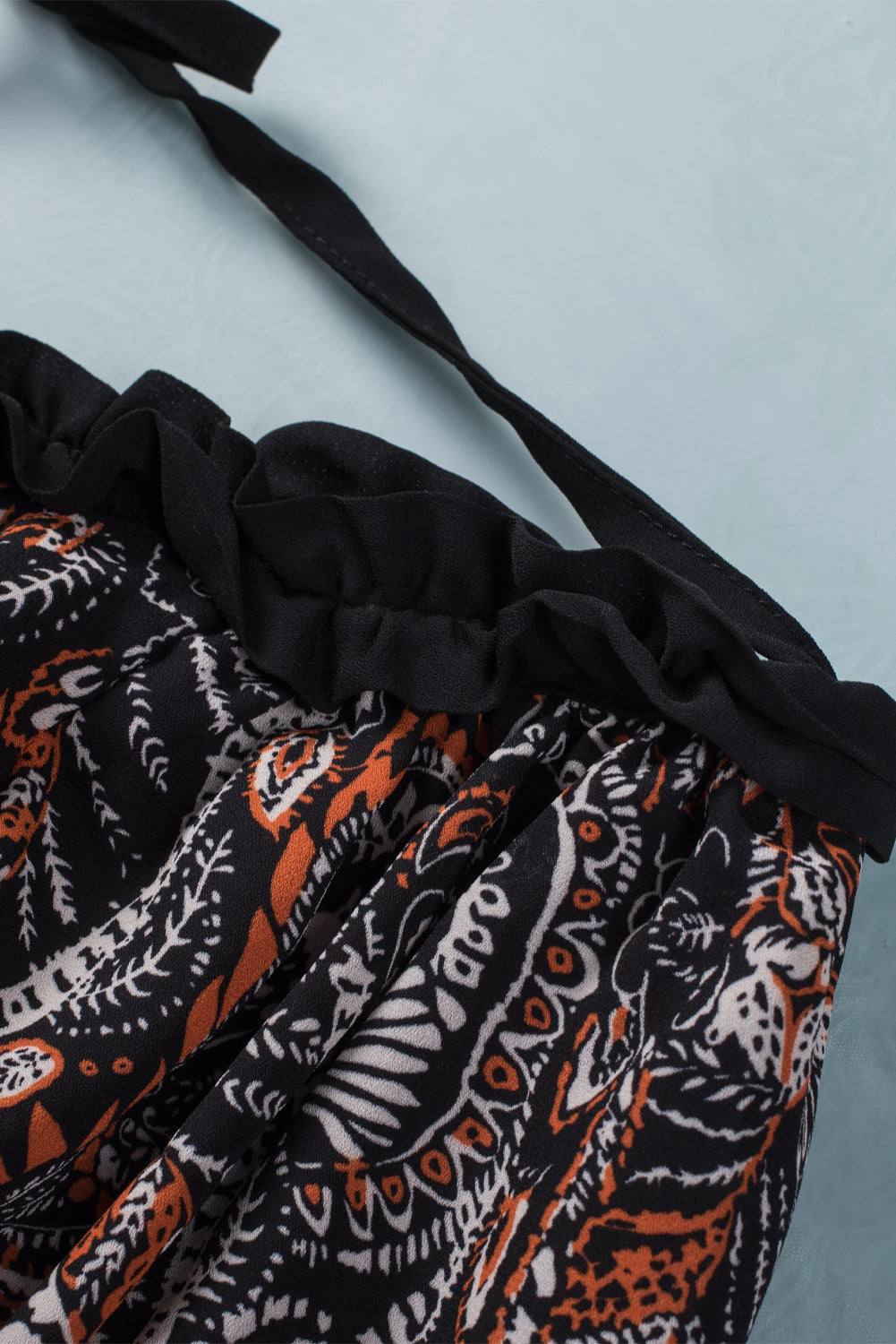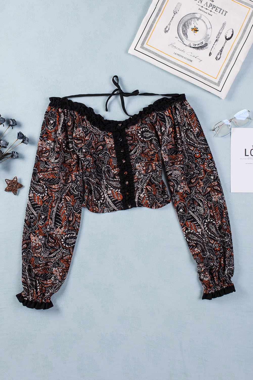 Printed Buttoned Balloon Sleeve Cropped Blouse
