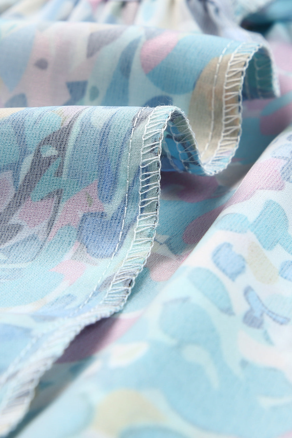 Printed Tie Neck Butterfly Sleeve Babydoll Top