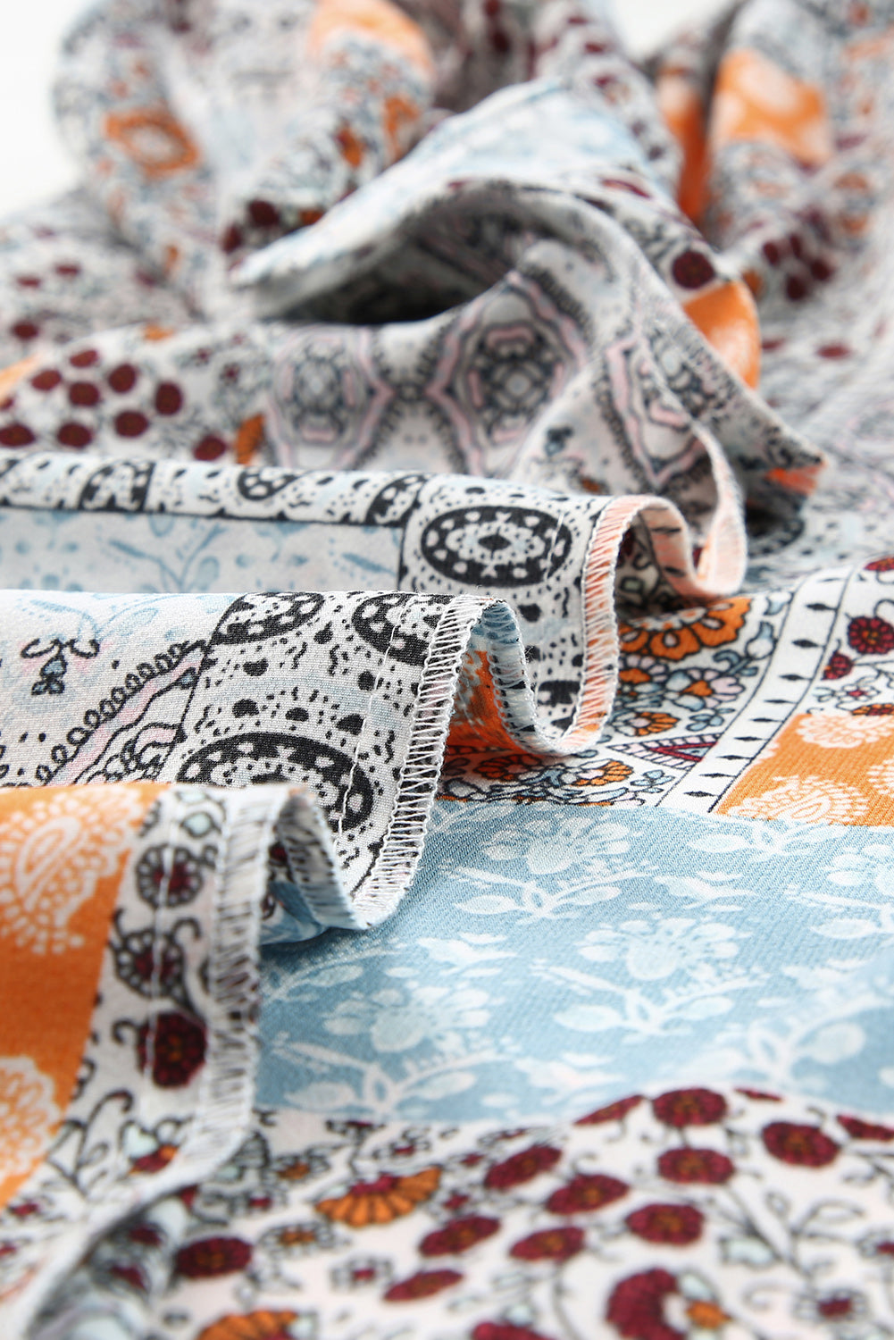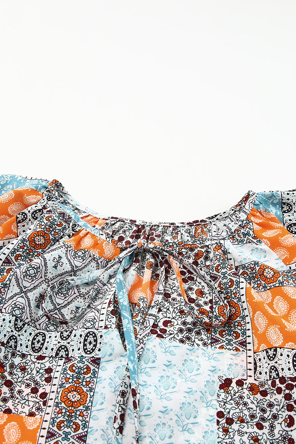 Printed Tie Neck Curved Hem Top