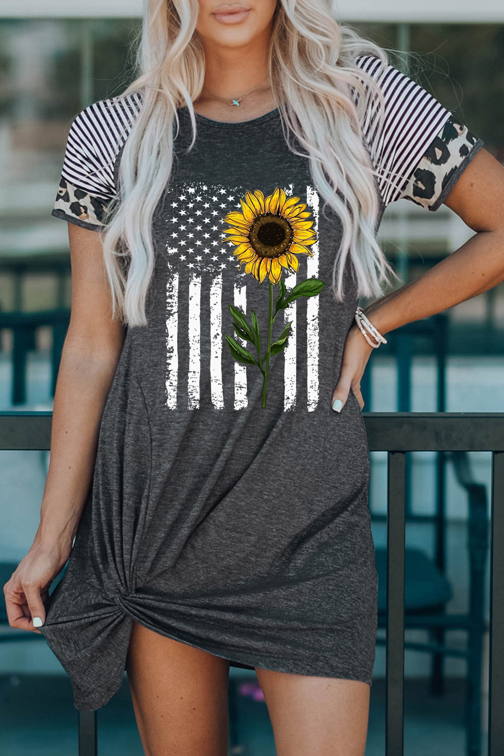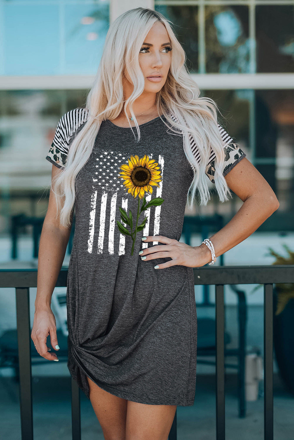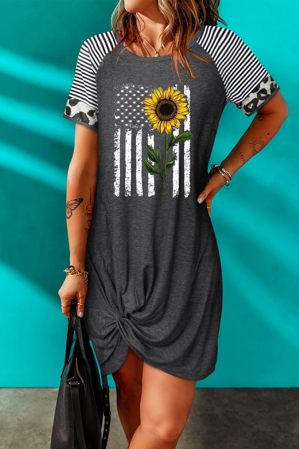 Sunflower Graphic Mixed Print Twisted Dress